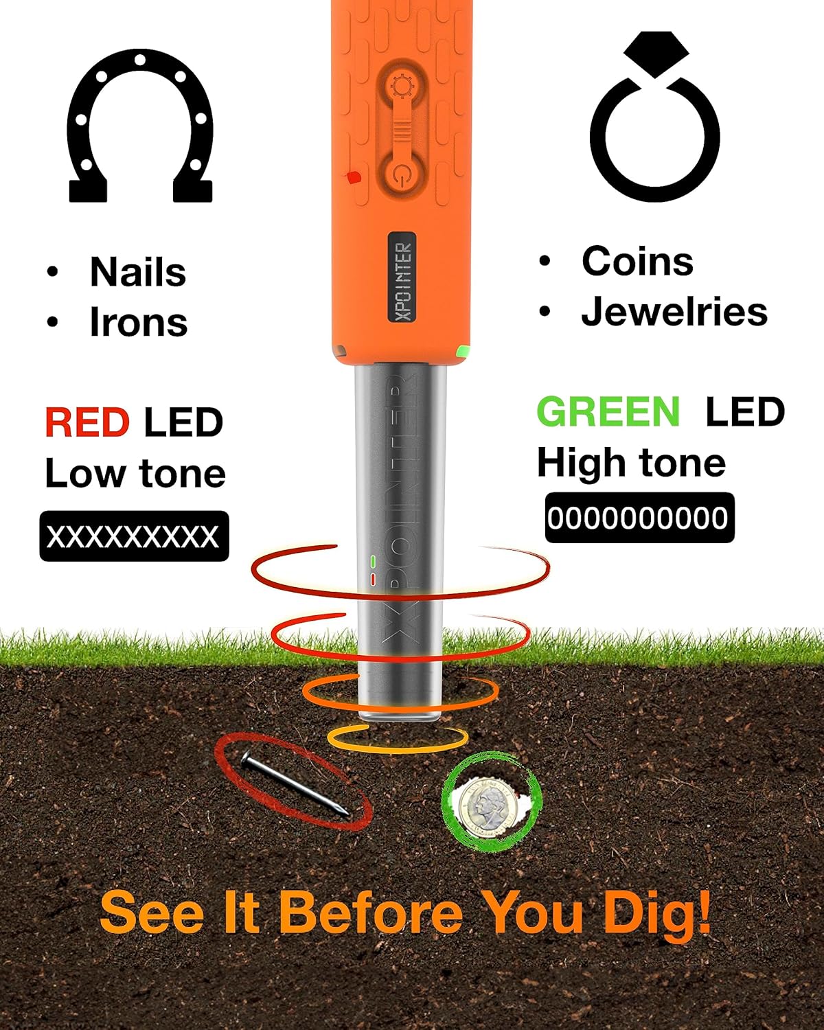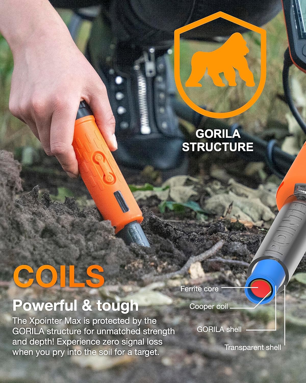 It is fully waterproof to an impressive depth of 5 meters. This feature allows you to use the pinpointer underwater without any problems. Even a sudden rain shower will not be a problem. After a successful day of searching, you can easily rinse the XPointer Max under the tap to clean it.